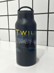 小林清親《高輪牛町朧月景》をあしらったサーモボトル。現在のJR田町-品川駅間にあたる高輪海岸を走る蒸気機関車を描いた作品をモチーフに、展覧会タイトル「トワイライト、新版画」にも通じる、夕暮れの場面を取り入れたデザインです。便利なハンドル付きで、お手入れもしやすい商品です。