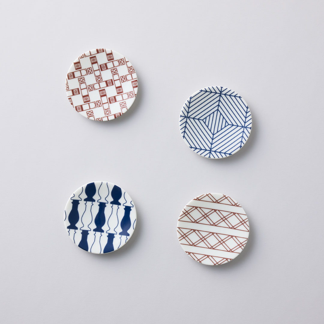 1,200円(税込)館内の様々なところからとった建築の意匠(モチーフ)をイメージしたモダンな柄を、全4種の豆皿にしました。